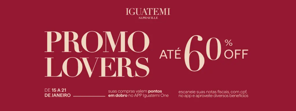 “A Promo Lovers é uma oportunidade de retribuir a preferência dos nossos clientes, oferecendo vantagens reais e uma experiência de compra ainda mais completa. Queremos que o público aproveite de forma completa: os descontos e os benefícios do nosso aplicativo, reforçando o Iguatemi Alphaville como um destino de compras, lazer e conveniência para toda a região”, destaca Verônica Marandini, gerente de marketing do empreendimento.