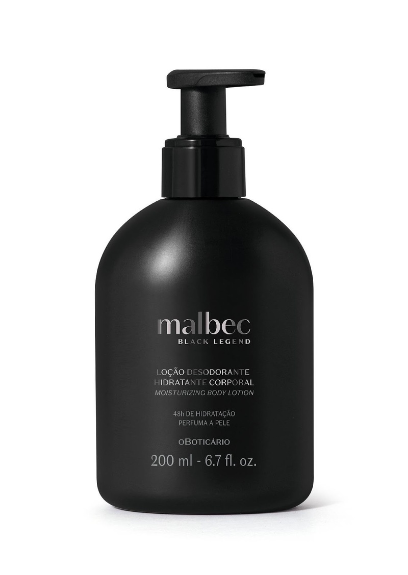 Além disso, o lançamento também é composto por extensões, como uma loção hidratante desodorante corporal, com textura leve e rápida absorção, que entrega mais de 48h de hidratação, e um desodorante antitranspirante aerosol, com 48h horas de proteção contra o mau odor e transpiração e cápsulas que prolongam a fragrância. Um combo para compor à intensidade e presença marcante de Malbec Black Legend.