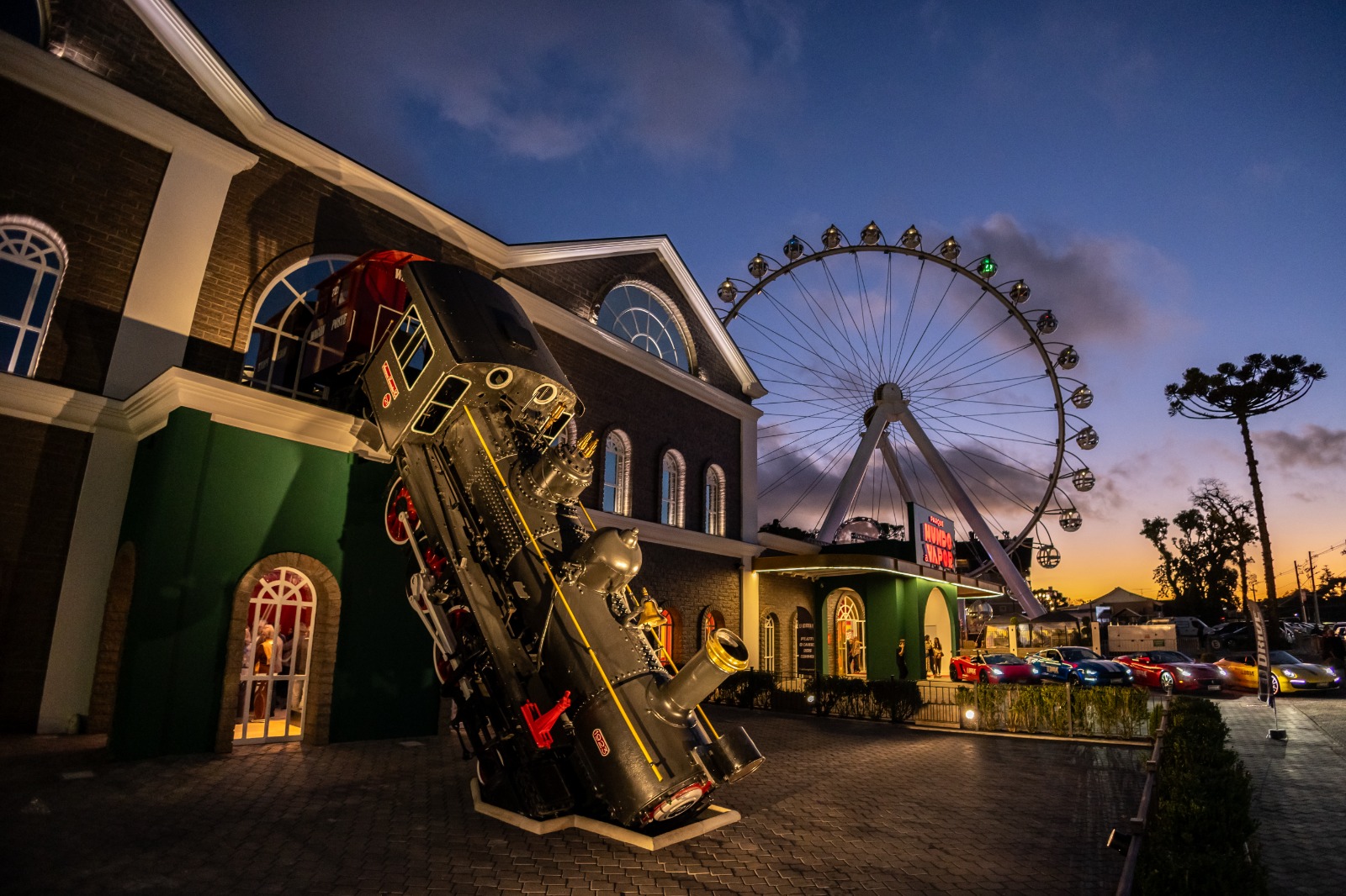 Do lado de fora, a roda gigante também ganhou outras funções. Virou cenário, ponto de encontro e palco. Pedidos de casamento iluminados, chás revelação que ocupam o céu, eventos ao pôr do sol e celebrações coletivas passaram a ser realizado. À noite, quando os LEDs da roda-gigante entram em cena, a roda deixa de ser apenas uma atração do Parque Mundo a Vapor e assume o papel de espetáculo urbano. “É nesse momento que ela mais brilha.” finaliza Lenise.