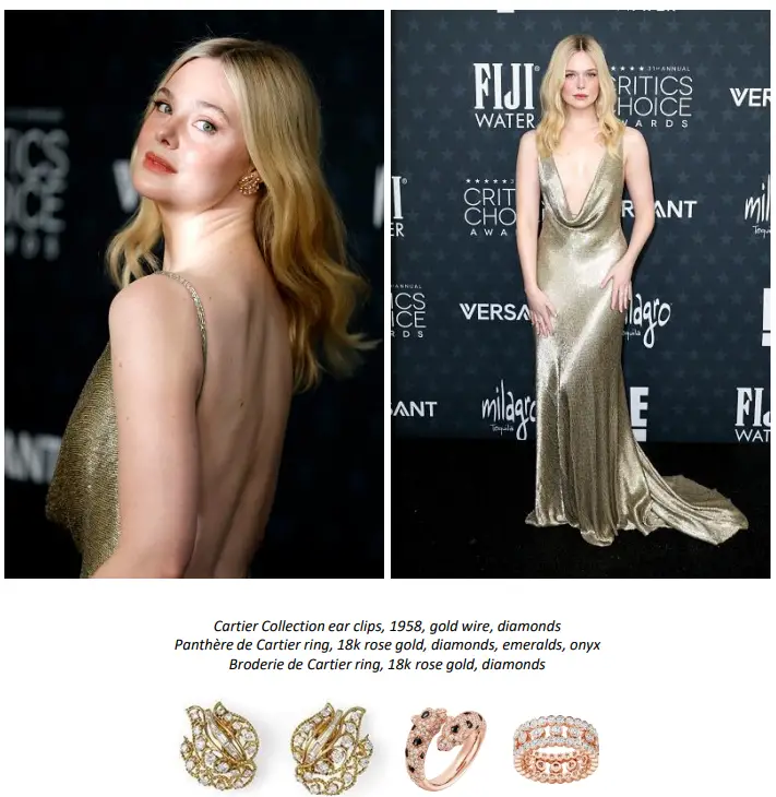 Além de Elordi, os também embaixadores Elle Fanning e Paul Mescal usaram joias e relógios Cartier para complementar seus looks. Os três artistas já haviam escolhido a marca dias antes, para suas produções do 37th Annual Palm Springs International Film Awards, reforçando a continuidade da parceria da maison com seus talentos em diferentes momentos da temporada de premiações.
