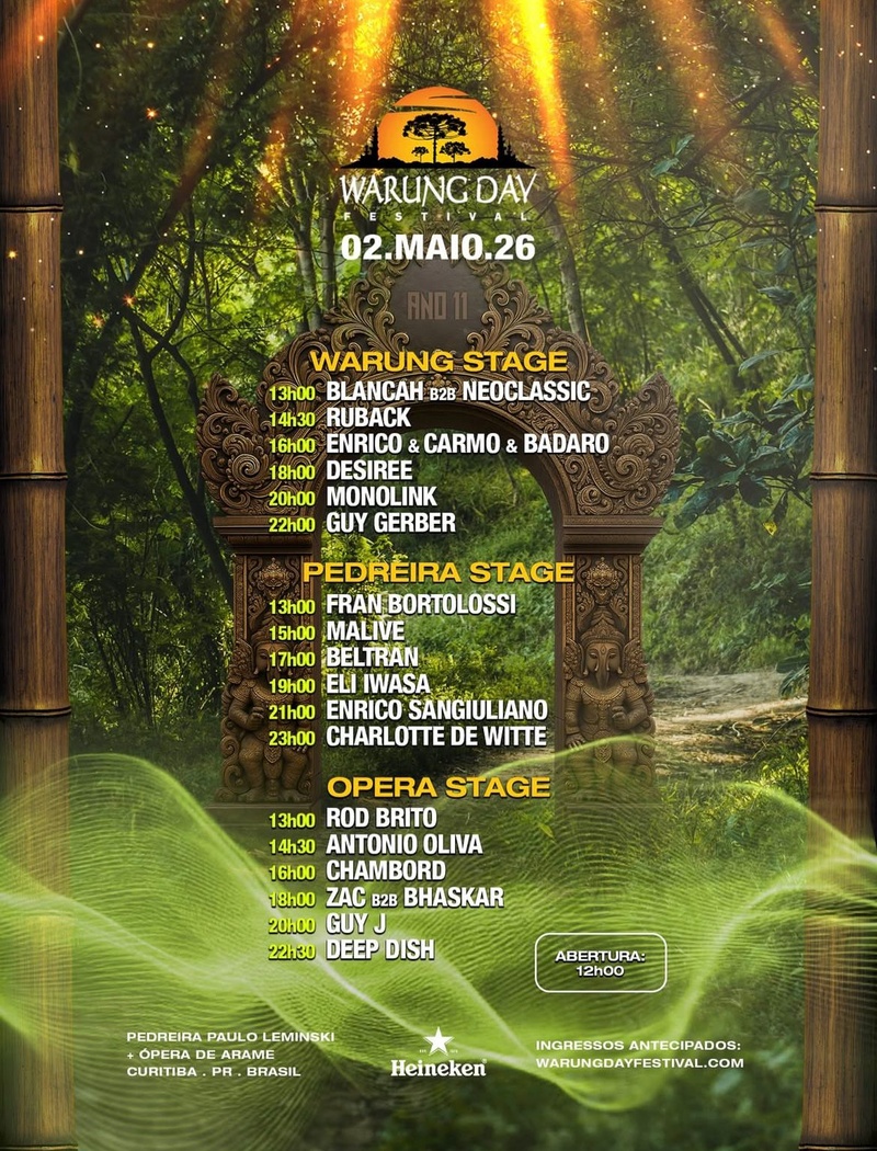 O Warung Day Festival está de volta e, como sempre, com uma programação imperdível. A organização do festival de música eletrônica mais conceituado do brasil acaba de anunciar a programação completa de sua edição 2026, a 11ª da história, além dos três palcos do festival, reafirmando seu lugar como um dos eventos musicais mais respeitados do mundo.