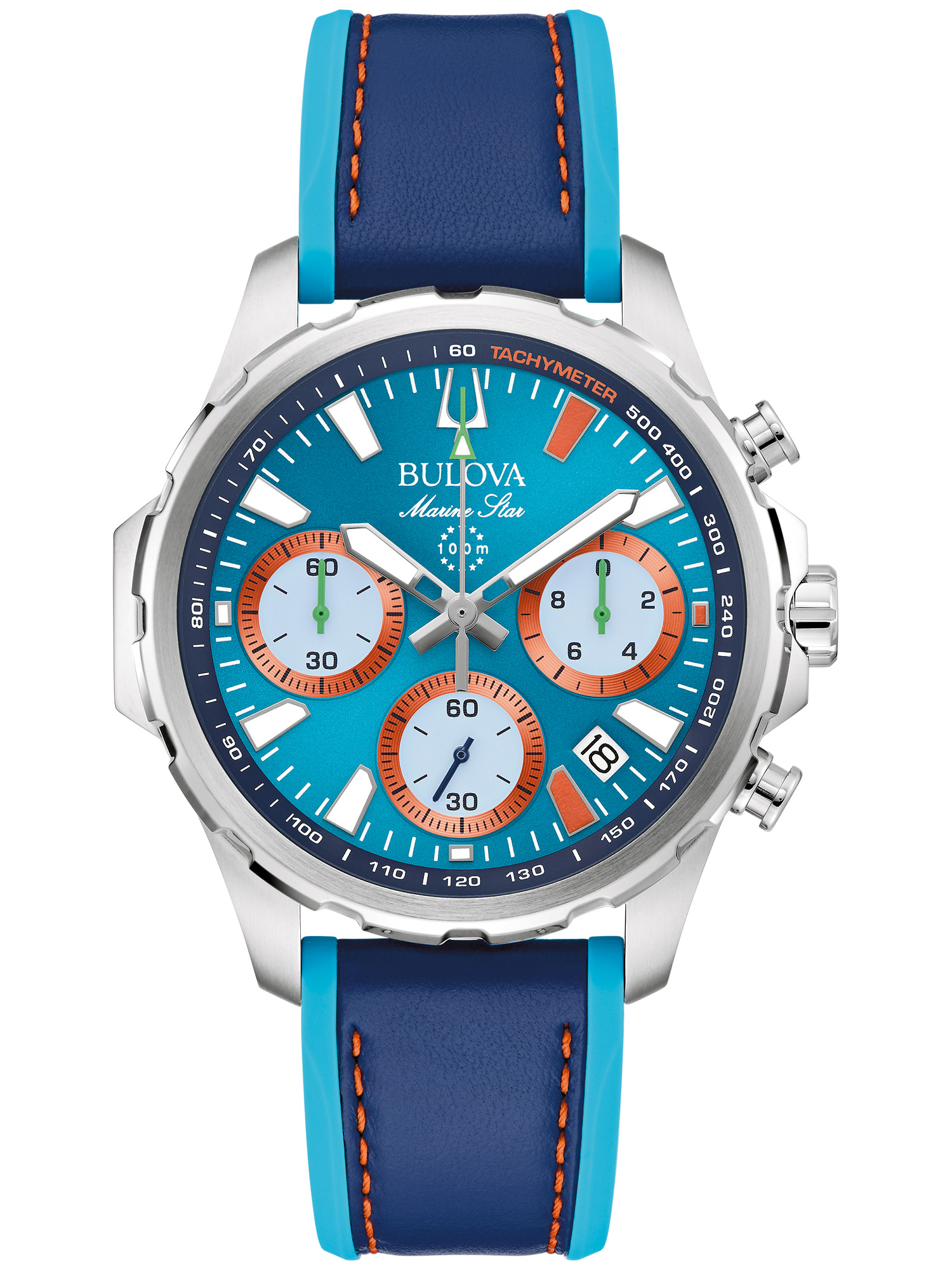 | Esporte: Para quem busca desempenho e resistência sem abrir mão do estilo, a Bulova apresenta o Marine Star B Team Miami E1 Racing. Inspirado no universo das corridas de barcos elétricos, o modelo traz visual esportivo e marcante, com mostrador azul, detalhes em Azul e submostradores em tons vibrantes, além de marcadores luminescentes que garantem excelente legibilidade. Com resistência à água de até 100 metros, cristal de safira e cronógrafo capaz de medir até 1/20 de segundo, o relógio traduz a conexão da marca com a velocidade e a inovação, sendo a escolha ideal para atividades esportivas e um estilo de vida dinâmico. |