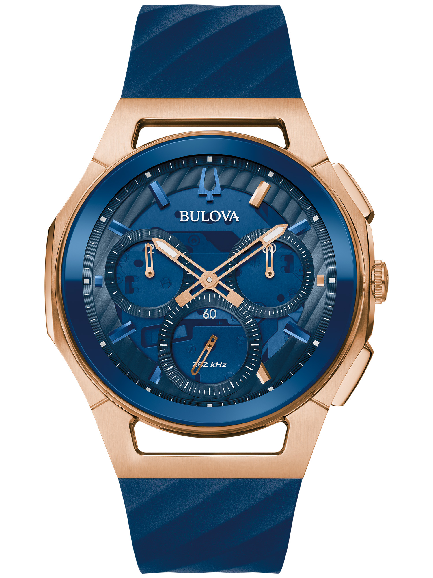 | Lazer: Para os momentos de descontração, a Bulova aposta em modelos que unem design marcante e inovação, como o Bulova x Marc Anthony CURV. Inspirado na musicalidade e na personalidade do artista, o relógio combina caixa em aço inoxidável em tom de ouro rosa com mostrador translúcido azul, criando um visual moderno e expressivo. Leve e anatômico no pulso, graças à exclusiva construção curva, o modelo traz movimento cronógrafo curvo proprietário de alta precisão e pulseira de silicone, tornando-se a escolha ideal para ocasiões de lazer que pedem conforto, estilo e personalidade. |