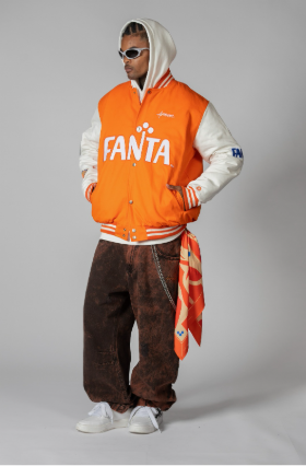 As cores desempenham um papel crucial como gatilhos emocionais, com o laranja vibrante de Fanta como ponto de energia e identidade, equilibrado por tons quentes e contrastes sóbrios para criar profundidade visual. Texturas e efeitos de desgaste conferem às peças uma história, como se tivessem sido encontradas e vividas. As modelagens foram desenhadas para reforçar movimento, presença e conforto, permitindo que o corpo interaja livremente com a roupa.