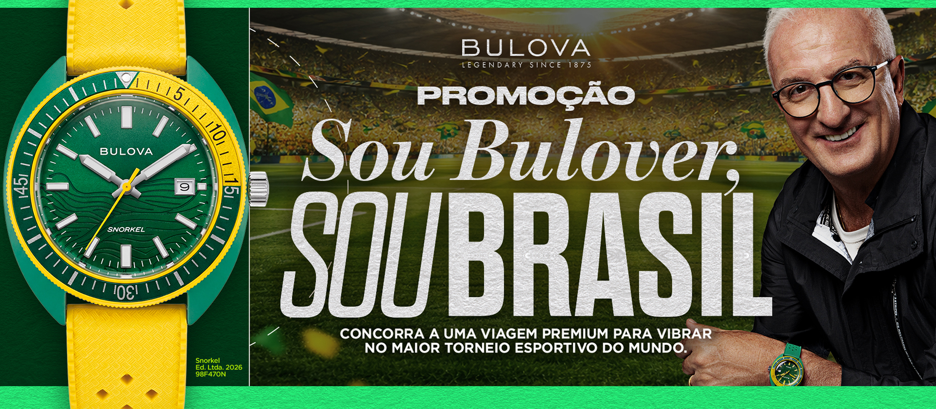Bulova, tradicional marca norte-americana com mais de 150 anos de história na relojoaria, apresenta a campanha “Sou Bulover, Sou Brasil”. A iniciativa conecta lançamentos exclusivos a uma promoção de abrangência nacional, transformando a paixão do brasileiro pelo futebol em uma experiência internacional.