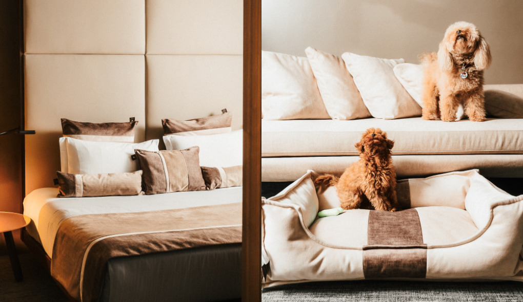 Criada em colaboração com a La Maison Sissy, a MEME Suite conta com mobiliário sob medida, Smart TV com canal dedicado Dog TV e acesso ao serviço exclusivo de restaurante para pets do hotel