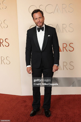 Outro nome que brilhou com a Ralph Lauren no Oscar 2026 foi o ator Will Arnett. Apostando em uma silhueta mais tradicional, porém não menos impactante, Arnett vestiu um smoking Purple Label com paletó de gola xale. Acompanhado por calça de alfaiataria e a clássica gravata-borboleta, o visual sintetiza o “black tie” em sua forma mais pura e sofisticada. A gola xale permanece como uma escolha estratégica para quem deseja suavizar as linhas do rosto e transmitir uma imagem de sofisticação atemporal.